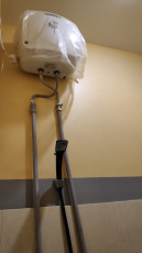 Selain itu, kamar mandi yang menurut saya sempit. Ukuran lebarnya perkiraan saya gak sampai 1,5 meter. Nah dengan ruangan yang sempit ini, di dalamnya ada wastafel dan wc duduk, jadi ya.. memang sempit.