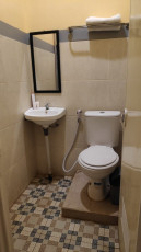 Di dalam kamar mandi sendiri terdapat shower, wastafel, tempat handuk, wc duduk dan perlengkapan mandi. Oh ya, untuk mandi airnya bisa pilih mau dingin atau panas karena tersedia Electric Water Heater masih baru (plastik segelnya belum dilepas :D)